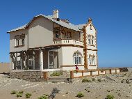 Heute hatten wir eine kurze Fahrstrecke vor uns, bis zur Küstenstadt Lüderitz waren es nur 125 km, leicht in etwas mehr als einer Stunde zu schaffen. Je mehr wir uns der Küste näherten, desto windiger und sandiger wurde es. Kurz vor Lüderitz liegt die sogenannte Diamantenstadt Kolmanskuppe, die wir aber erst später besuchen wollten. Viele Reiseberichte berichten nicht viel nennenswertes über die Stadt, raten sogar, gar nicht erst hinzufahren. Nun, uns gefiel es hier überraschend gut zumal es eben auch mal wieder etwas Abwechslung gab. Wir hatten 'endlich' mal wieder eine feste Unterkunft und ein richtiges Bett in der kleinen Pension "Zur Waterkant" bei einem freundlichen älteren Ehepaar. Wir machten eine kleine Stadtbesichtigung, unschwer war an vielen Gebäuden und Straßennamen der Einfluß der Deutsch-Südwestler zu erkennen. Durch Zufall erfuhren wir von der Sunset Segelfahrt auf der "Sturmvogel". Wir waren die einzigen Teilnehmer und so verbrachten wir mit dem sehr freundlichen Schiffseigner Günther eine schöne Stunde auf dem Meer, mit Bier, Apfelsaft und Erdnüssen. Wir sahen Seerobben, einen schwimmenden Pinguin, fliegende Flamingos und erlebten einen der schönsten Sonnenuntergänge. |