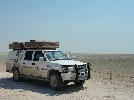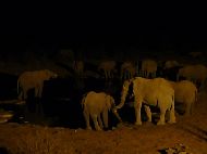 Und wie lange würde die Rückfahrt noch dauern? Wir waren froh, als wir die Turmspitze vom Camp sahen, doch angekommen, war das Tor zu. Es war bereits kurz nach 18:00. Oh je, ich hatte gehört, daß eine verspätete Rückkehr mit einer hohen Geldstrafe geahndet werden würde. Nach kurzer Zeit deutete uns ein Mann innerhalb des Camps an, wir sollten um das Camp herum zum Haupteingang fahren. Glück gehabt, hier war noch offen. Unser Blutdruck normalisierte sich. In Erinnerung an unsere Erlebnisse im Naukluft Parkt, hatten wir uns für 20:00 zu einer Nachtfahrt angemeldet. |