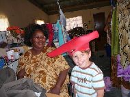 Während der Reisevorbereitung in Deutschland hatten wir im www.namibia-forum.ch eine Familie aus Karlsruhe kennengelernt, welche zeitgleich mit uns, aber entgegen unserer Richtung, unterwegs sein wollte. Gemäß unser beider Planungen sollte der Kreuzungspunkt hier in Swakopmund sein, und in der Tat, Johann wartete bereits mit seinen Eltern und seiner Schwester auf uns. Es gab natürlich viel zu erzählen und die Kinder hatten auch ihren Spaß beim gemeinsamen rumtoben. Gemeinsam zogen wir los zum Abendessen. Wir gingen in den Kupferkessel, einem Restaurant, welches quasi in einem Museum untergebracht ist. Das Essen war sehr lecker. Unsere erste und einzige Nacht im Zelt an der Küste, war etwas kühl und durch die Seeluft etwas feucht, aber wie immer haben wir dennoch sehr gut geschlafen. Unsere Bekannten mußten am nächsten Morgen schon sehr froh, da Sie ab Walvis Bay einen Bootsausflug gebucht haben (Wir werden diesen erst in zwei Tagen machen). So konnten wir ausschlafen, duschen und frühstücken und danach zogen wir planmäßig in die Pension D'Avignon um. Zu Zaida's Freude, gab es hier mal wieder zwei Wachhunde. Die Pension liegt sehr zentral, fast nebenan auch ein Supermarkt, wo wir gleich mal einen Besuch abstatten mußten. Dann noch schnell eine Runde durch den Ort gedreht und erste Eindrücke gesammelt. Swakopmund wirkt sehr sauber, geprägt natürlich durch die deutsche Vergangenheit. Auf unserer gesamten Namibia Reise erschien uns Swakopmund als sehr touristischer Ort, und steht sehr im Gegensatz zum Rest des Landes. Der perfekte Ort, um neue Energie für die Fortsetzung der Reise zu tanken. Auf einem kleinen Markt gibt es so einige Mitbringsel zu erstehen, allerdings sollte man gut handeln können. |